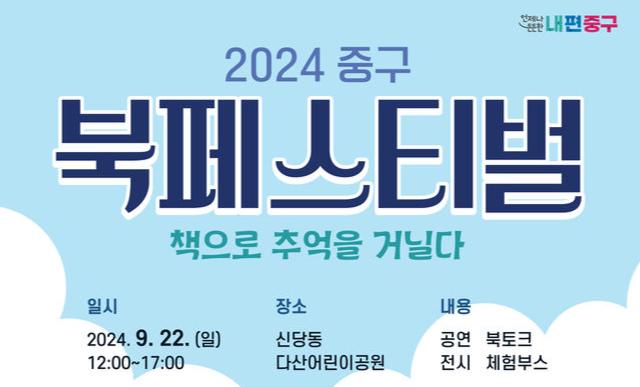 서울 중구가 오는 9월 22일 다산어린이공원에서 ‘2024 중구 북페스티벌’을 개최한다. 올해로 5회째를 맞는 이번 페스티벌은 ‘책으로 추억을 거닐다’라는 주제로, 책을 통해 다양한 세대가 소통하고 공감할 수 있는 축제로 마련했다.