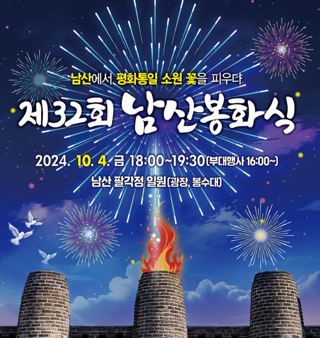 구는 10월 4일 오후 6시, 남산 팔각정 앞에서 ‘제32회 남산 봉화식’을 개최한다. 중구민의 날을 기념하고 평화와 화합을 기원하는 행사로 민주평화통일자문회의 서울중구협의회와 공동 주최한다.